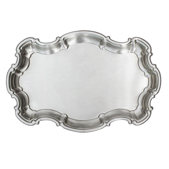 Classic styling meets modern sophistication with this chic, handcrafted Chippendale-style tray from Salisbury, which makes a stunning gift when you add engraving. It’s made of satin-finished pewter and comes in a gift box. Measures 9” x 6”.