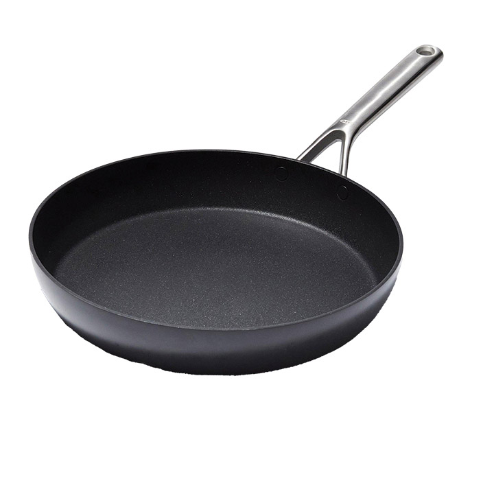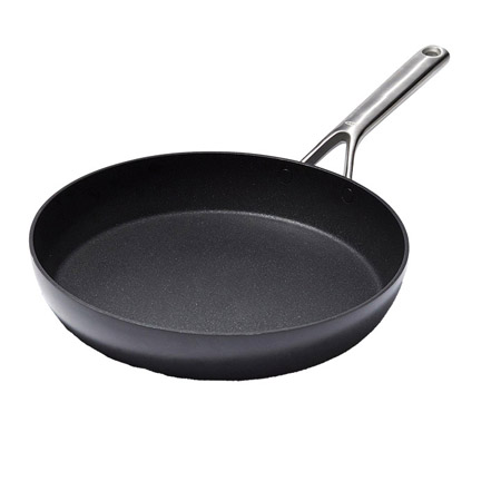 Get better cooking performance with this 12” nonstick ceramic professional frying pan from OXO. The diamond-reinforced ceramic nonstick coating offers effortless food release, and the hard-anodized aluminum construction heats faster and more evenly. The coating is PFAS, PFOA, lead, and cadmium-free, and the heavy-duty induction base works for all stovetops. Dishwasher safe.