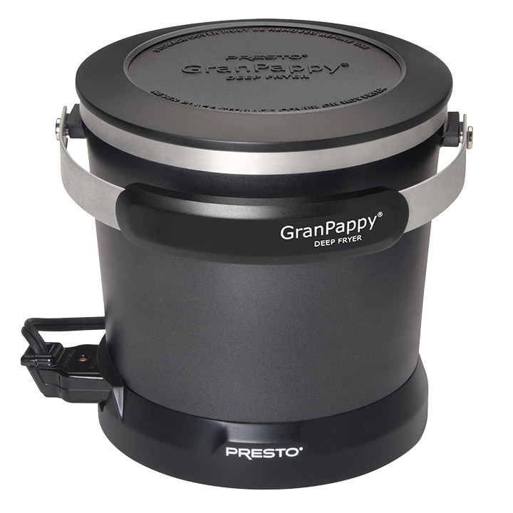 The GranPappy electric deep fryer from Presto makes delicious, deep-fried foods, fast and easy-crispy French fries, chicken, shrimp, onion rings, and more. The deep fryer features a PFAS-free ceramic nonstick surface and maintains the proper frying temperature automatically with no controls to set. The machine will let you fry six servings of French fries with just six cups of oil, and the snap-on lid allows oil to be stored for use again. Measures 9.98” x 8.25” x 9.68”.