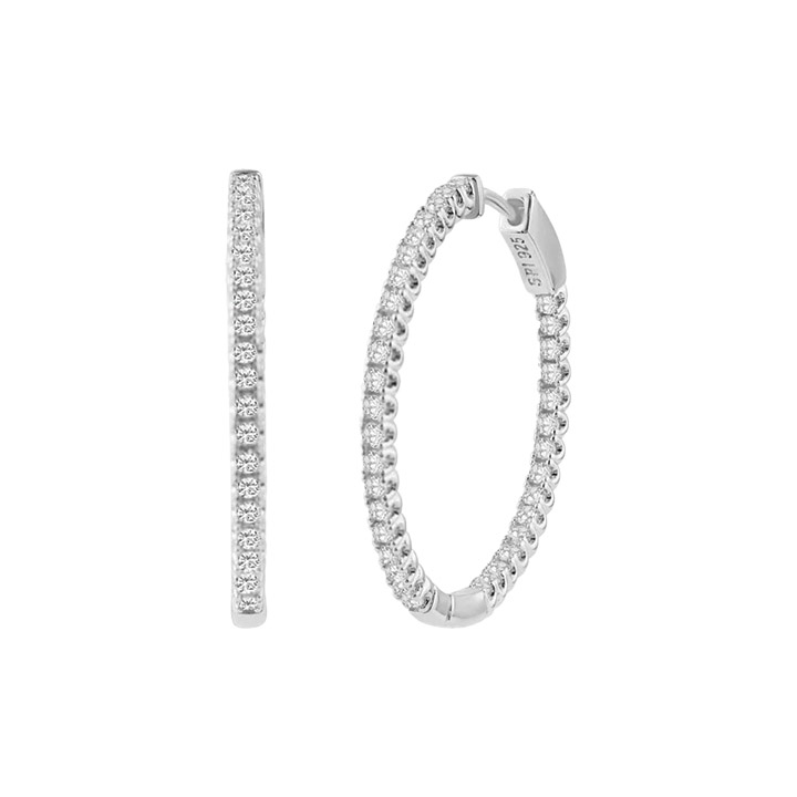 These eternity hoop earrings from Parikhs sparkle with clear cubic zirconia stones set in rhodium plating over 925 sterling silver. Measuring 30mm, they offer a bold yet timeless style perfect for day or evening wear.