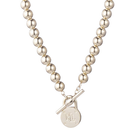 Elevate your style with this chic beaded pendant necklace with a RLL logo accent. The necklace has a toggle closure and signature RLL padlock fob at the toggle. The necklace measures 17”.