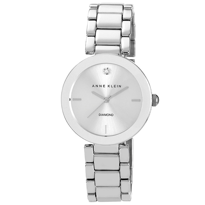 This women’s bracelet from Anne Klein is a sleek accessory that will improve any outfit. It features a round 32mm silver-tone case, a silver-tone alloy bracelet, and a silver dial. The watch includes Anne Klein gift box packaging and is water resistant to 100 feet.