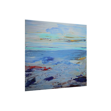 Experience the beauty of the coast with “Textured True Blue” by JD Studio, an abstract landscape painting that features thick layers of paint for texture and depth. It’s printed on a Dibond aluminum metal paint, suitable for indoor or outdoor use, with a backer frame to hold the art off the wall.