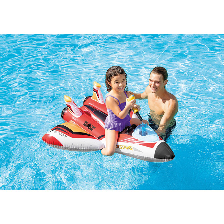 A perfect way to get your little ones in the water. An air plane ride including a water gun for hours of pool time fun. Equipped with durable hanel for safety. 88lbs max weight limit.