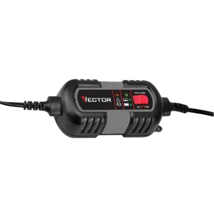 Designed to keep batteries at optimal charging capacity, the Vector 1.5-amp battery charger and battery maintainer is both dependable and durable. The compact unit is designed for all types of 6-volt/12-volt batteries and is compatible with all AGM/GEL/WET battery systems. The smart charger is fully automatic, so it stops when the battery is fully charged and switches to float mode monitoring to keep it topped off and maintain a charge.