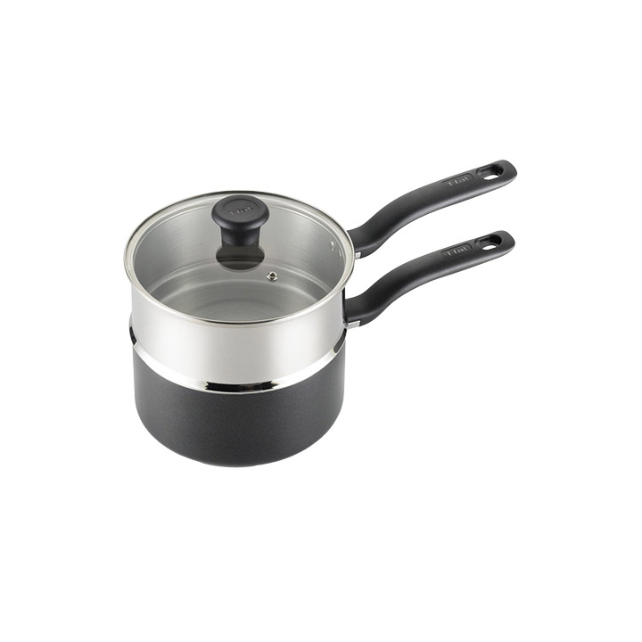 The T-Fal specialty 3-quart double boiler is handy and versatile: It includes a nonstick saucepan, stainless-steel boiler insert, and a vented glass lid. The aluminum nonstick pot is designed for even heating, with ergonomic black handles that provide a comfortable and secure grip. Dishwasher safe and oven safe up to 350F.