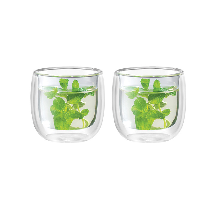 Serve up your drinks with style and substance with these two Sorrento 8.1-ounce double-wall tea glasses. Each glass has been designed to ensure the optimal temperature of your drink of choice and maintain the drink’s ideal temperature. Constructed from high-quality sturdy borosilicate glass, the double-wall glasses are exceptionally durable and dishwasher-safe, lightweight, and break-resistant.