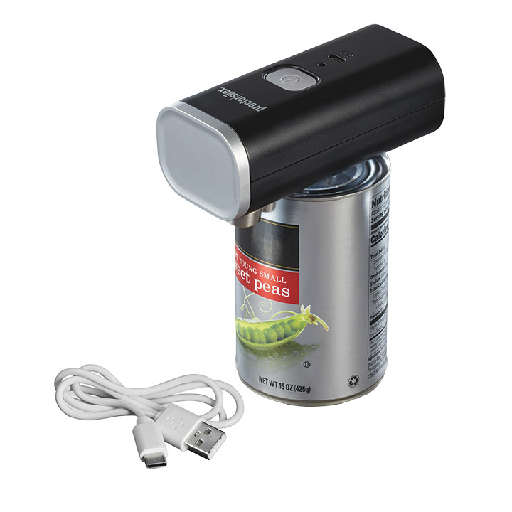The smooth-edge cordless can opener quickly and effortlessly opens cans of all sizes, from small to extra large. It easily opens 60 cans on a single charge and quickly recharges in 2 hours, and it gives you hands-free operation with the touch of a button. The built-in stainless-steel lid lifter doesn’t touch food, and it has a cordless and portable design, with a charging cable included.