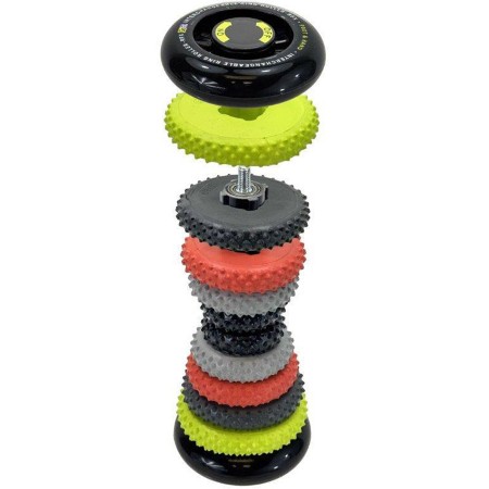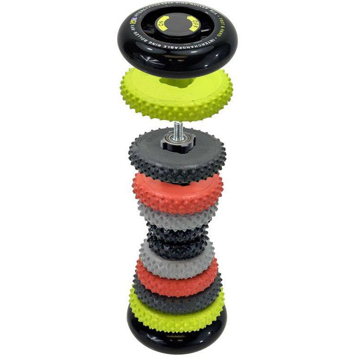 This revolutionary massage roller has 10 interchangeable rings in 5 sizes, each with soft, firm reflexology bumps. Simply unscrew one wheel to rearrange the rings and transform the roller to target plantar fasciitis, carpal tunnel, and other sore muscles.