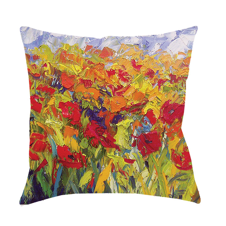 Celebrate the arrival of spring with this lovely Spring Fling pillow, featuring a painting of a field of red flowers by Jess Boutin. The 14” x 14” durable pillow is made of double-sided print-poly poplin material with down alternative. Made in the USA.