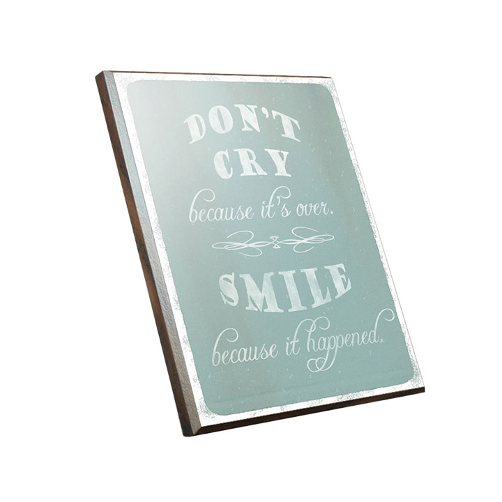 “Don’t Cry” is an inspiring artwork by Hal Halli, featuring a powerful message that will uplift and motivate you: “Don’t cry because it’s over. Smile because it happened.” Hang the walnut plaque on your wall as a daily reminder to stay strong. The intricate design and soothing colors will make a lovely addition to any room. Measures 9” x 12”.