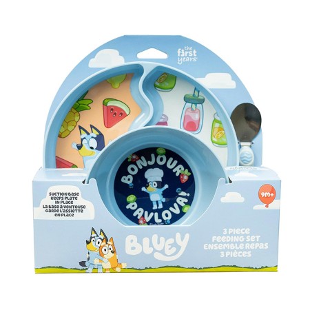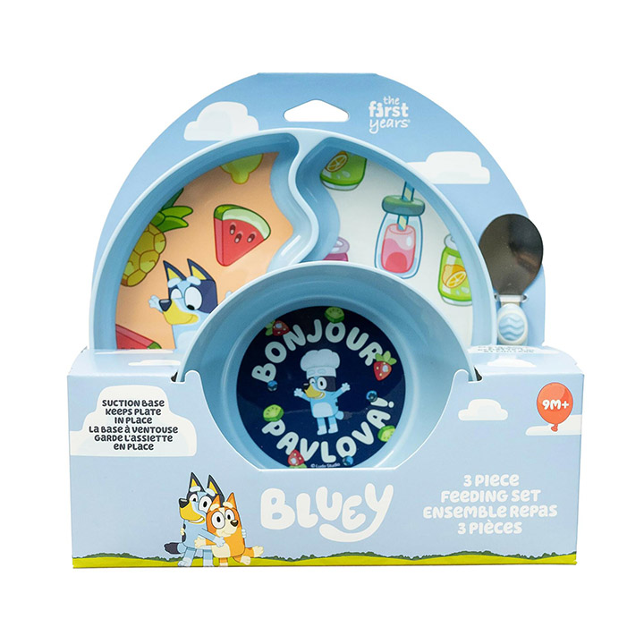 Learning to eat is more fun with Bluey at the table! Stainless steel spoon with easy grip handle is perfect for self feeding. It work in sync with both the wavy wall plate and deep-sided bowl for easier scooping.
