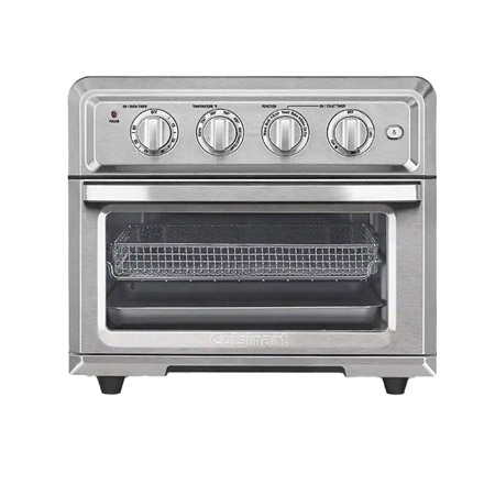 Introducing a healthier way to fry, the Cuisinart Air Fryer Toaster Oven is a premium full-size toaster oven with a built-in air fryer. Air frying uses powerful ultra-hot air and is a healthier way to prepare delicious fried favorites, from wings to fritters to fries to shrimp. The 7 functions include air fry, convection bake, convection broil, bake, broil, warm and toast. It has a 0.6-cubic foot interior with light and is large enough to air fry up to 3-pounds of food.