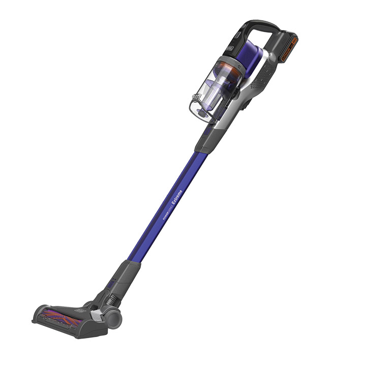 The Powerseries Extreme Cordless Stick Vacuum is perfect for hard floors, area rugs, and carpets, with a V-shaped bristle pattern designed to pick up pet hair, dust, and crumbs, and a patented anti-tangle brush bar that minimizes hair wrap and maximizes suction power. The front-facing dustbin gives quick access when emptying, and allows the vacuum to lay flat for hard-to-reach areas. It delivers up to 55 minutes of run time on a single charge. Detach the removable 20V battery to charge separately or leave it in to charge while it self-stands or hangs from the wall mount.