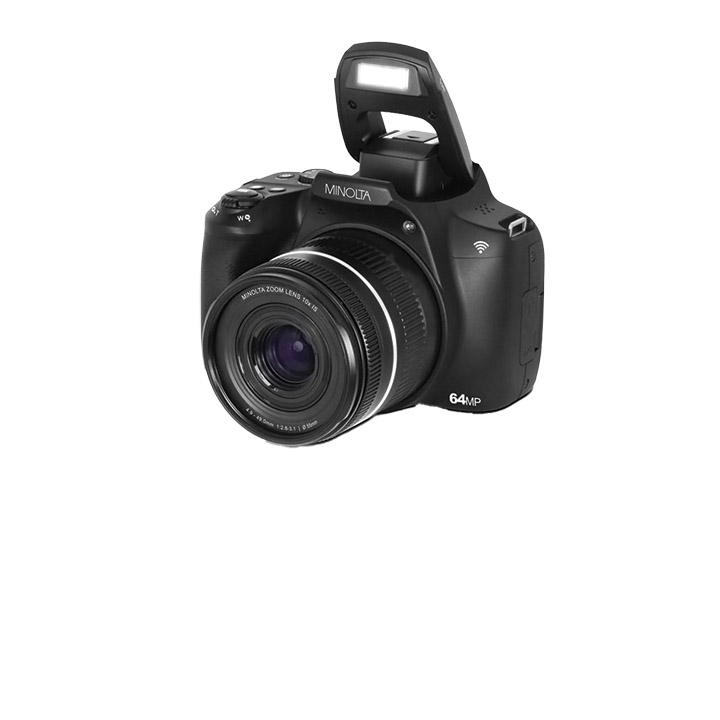 Minolta's MNB10Z bridge camera incorporates an autofocus 10x optical zoom lens with f2.8-3.1 aperture for enhanced low-light shooting. With 64MP hi-res photo resolution, it gives crisp images and stunning 4k UltraHD videos. With built-in Wi-Fi and app integration, you can connect to a smartphone and transfer media for instant sharing.