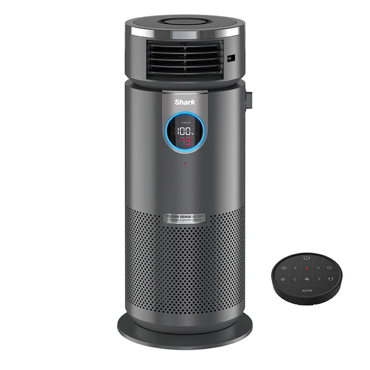 The Shark Air Purifier 3-in-1 uses Pure Air Microforce to deliver fast, powerful, and quiet purification with added purified heat and purified fan modes for spaces up to 500 square feet. A HEPA filter captures 99.98% of airborne particles like allergens, dust, and dander. Includes NanoSeal HEPA filter and remote.