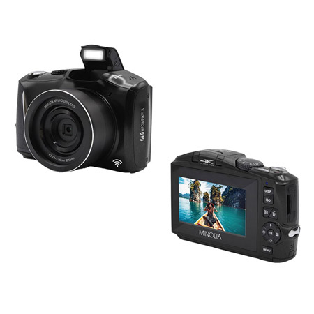 This Minolta 64MP, 4k UHD autofocus digital camera is a robust autofocus digital camera with top-tier integrated features. The 16x digital zoom and 3” IPS LCD capture every detail, while creative modes like time lapse and slow-motion transform scenes into cinematic masterpieces. Macro mode and high-sensitivity ISO 6400 expand your shooting capabilities.