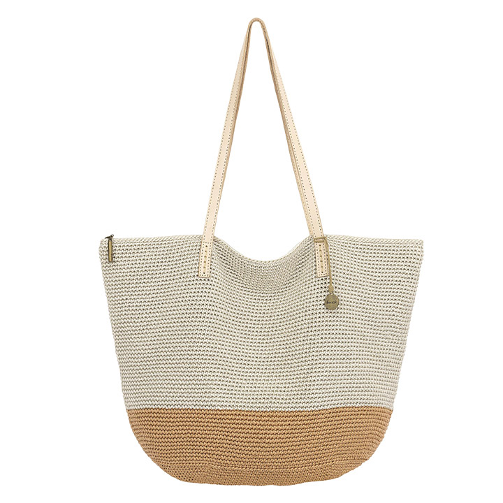 Roomy, lightweight, and secure, the classic Faye tote from The Sak is designed for day-trippers and over packers. It teams soft-but-sturdy leather straps with a hand-crocheted body made from recycled, ocean-bound plastics. Multiple pockets and a full-zip topline make this style ideal for beach outings, overnights, and more. It measures 20” x 5.75” x 12” with a 10.5” strap drop.
