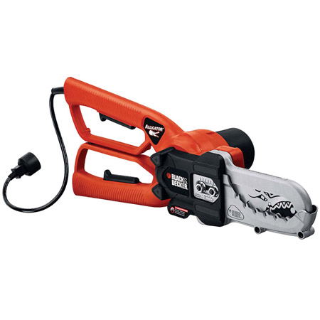 The Black & Decker alligator lopper has a 4.5-amp motor for powerful, fast cutting and innovative clamping jaws that grab and cut in one easy motion. The heavy-duty cutting bar and chain deliver fast cutting of thick branches and logs, and the lopper has a 4” cut capacity for cutting heavy branches too big for manual pruners and loppers.