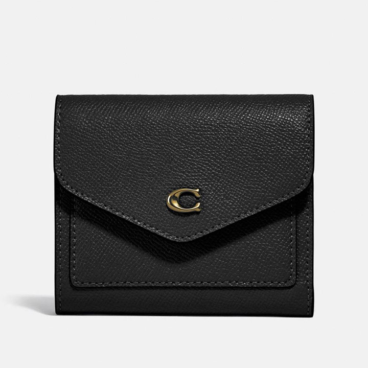 Crafted from scratch-resistant cross grain leather, the Wyn wallet boasts an elegant envelope design. It features Signature hardware, seven card slots, a full-length bill compartment, and an outside zip coin pocket. Complete with a snap closure, it offers both style and organization. Measures: 2 x 5 x 9.