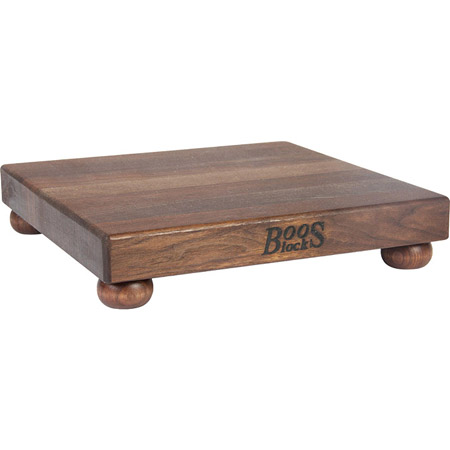 This beautiful John Boos American black walnut cutting board will become a focal point of your kitchen for both food preparation and presentation of charcuterie. It’s 1.5” thick and features edge-grain construction, wooden bun feet, and Boos Block Cream Finish with beeswax. Weighs 5-pounds.