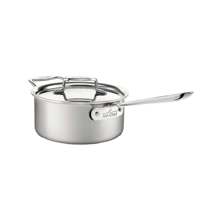 All-Clad’s D5 brushed stainless-steel 3-quart saucepan features five-ply bonded construction that combines alternating layers of aluminum for excellent heat conductivity and stainless steel for heat diffusion and durability. Oven safe up to 600F and dishwasher safe.