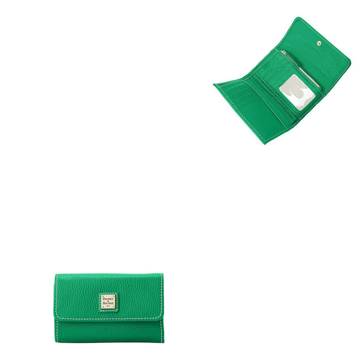 A Dooney Original- A simple, classic wallet that is a functional as it is chic. Crafted from Italian pebble grain leather, this look effortlessly hides signs of everyday wear. Features: flap closure, one inside zip pocket, ID window, billfold compartment, eight credit card slots. Measures: 3.75 x .75 x 6.